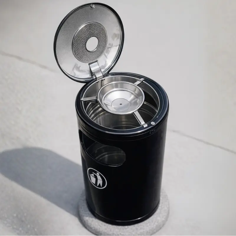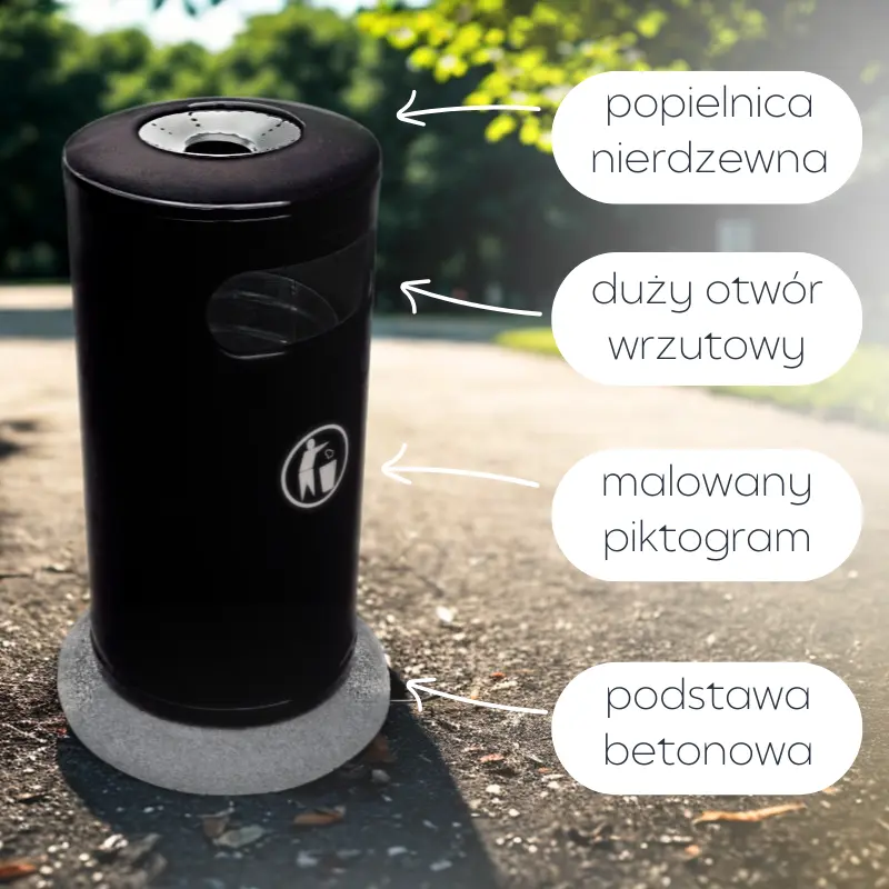 - Wolnostojąca koszopopielnica do zbiórki śmieci zmieszanych i niedopałków