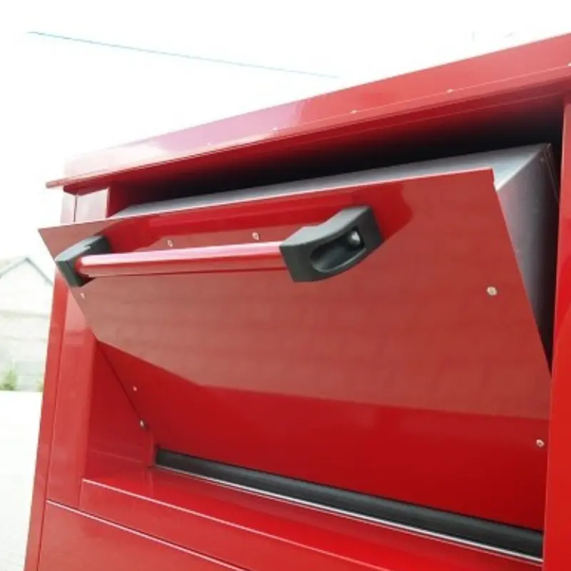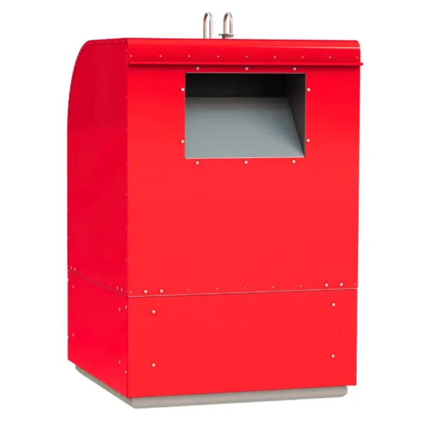 Wiele rozwiązań użytych w czerwonym pojemniku na elektryczne odpady wspiera wygodę użytkowników. Klapa wspomagana sprężynami gazowymi otwiera się i zamyka płynnie oraz automatycznie, a ergonomiczna rączka zapewnia wygodę wrzutu elektrycznych śmieci do środka. Konstrukcja z bezpiecznymi szczelinami zgodnymi z EN 840-6 i EN 13071 chroni użytkowników, przed przypadkowym przytrzaśnięciem dłoni lub sprzętu, co jest szczególnie ważne gdy obsługują ją osoby starsze, niepełnosprawne lub dzieci. System dolnego rozładunku, obsługiwany przy pomocy dźwigu HDS, znacząco przyspiesza i ułatwia opróżnianie pojemnika. Daszki ochronne skutecznie zabezpieczają wnętrze przed deszczem,