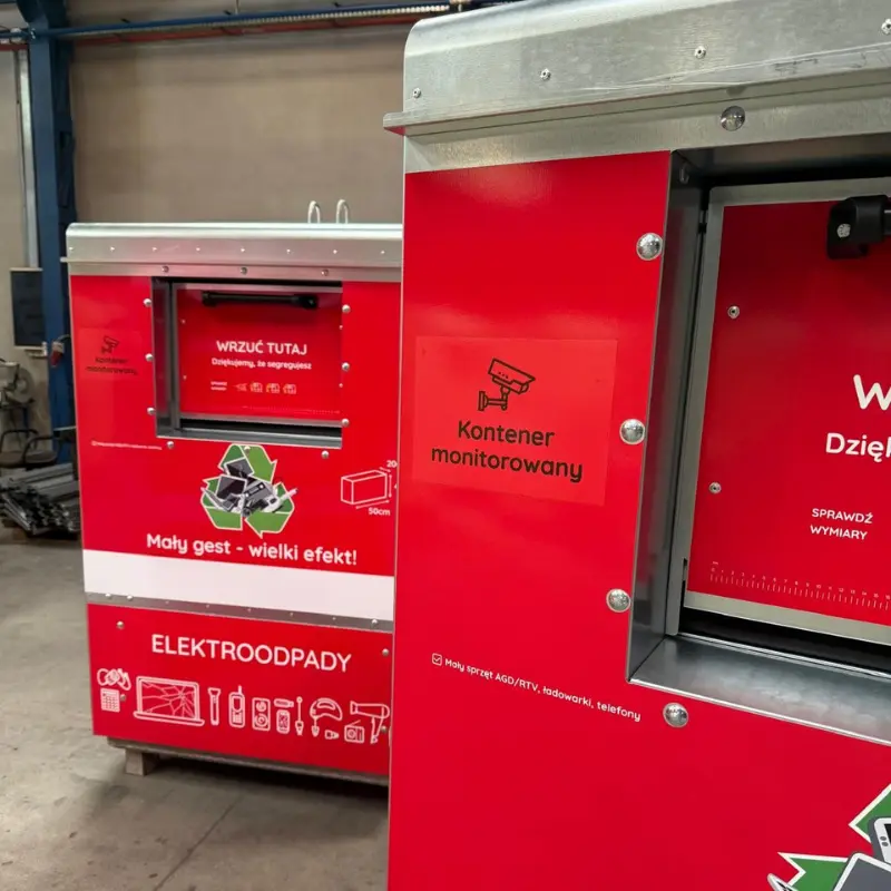 CZERWONY KONTENER DO ZBIÓRKI ELEKTROODPADÓW – BEZPIECZNE ZBIERANIE BATERII, AKUMULATORÓW I MAŁEGO AGD