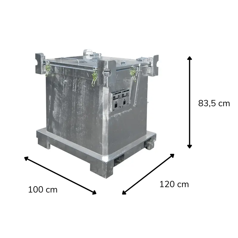 mogą być transportowane w międzynarodowym przewozie drogowym oraz kolejowym.Maksymalna gęstość magazynowanych substancji w kontenerze wynosi 1.5 kg/l. Maksymalna masa całkowita kontenera wynosi 868 kg. Pojemnik sztaplowany, maksymalna ilość kontenerów ułożonych jeden na drugi: 3.