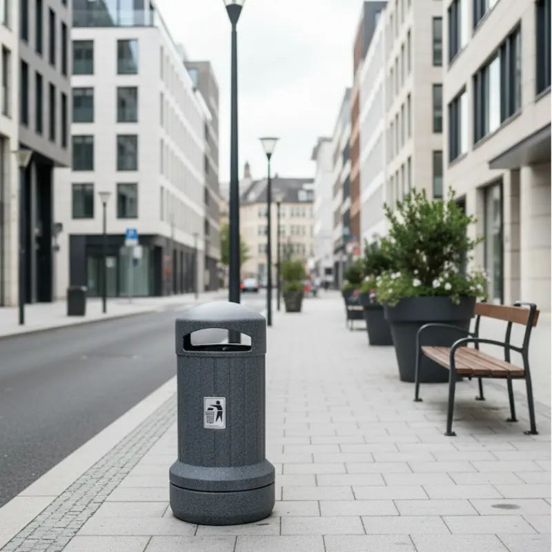 Betonowa podstawa do plastikowego kosza zapewnia wyjątkową stabilność, zwłaszcza na terenach zielonych, chroniąc go przed przewróceniem nawet przy silnym powiewie wiatru. Jej konstrukcja utrudnia przeniesienie i jeszcze mocniej zabezpiecza przed próbą niszczenia kosza na śmieci z tworzywa. Materiał podstawy ten jest odporny na działanie słońca, deszczu, dzięki czemu zachowuje swoje właściwości przez wiele lat. Beton nie wymaga szczególnej, dodatkowej konserwacji, więc utrzymanie takiej infrastruktury miejskiej będzie stosunkowo tanie.