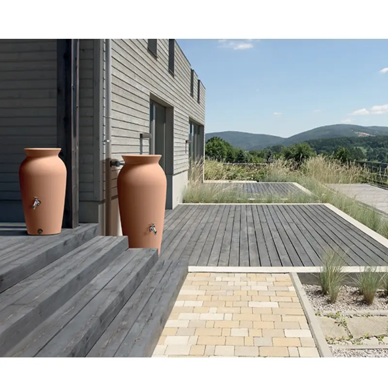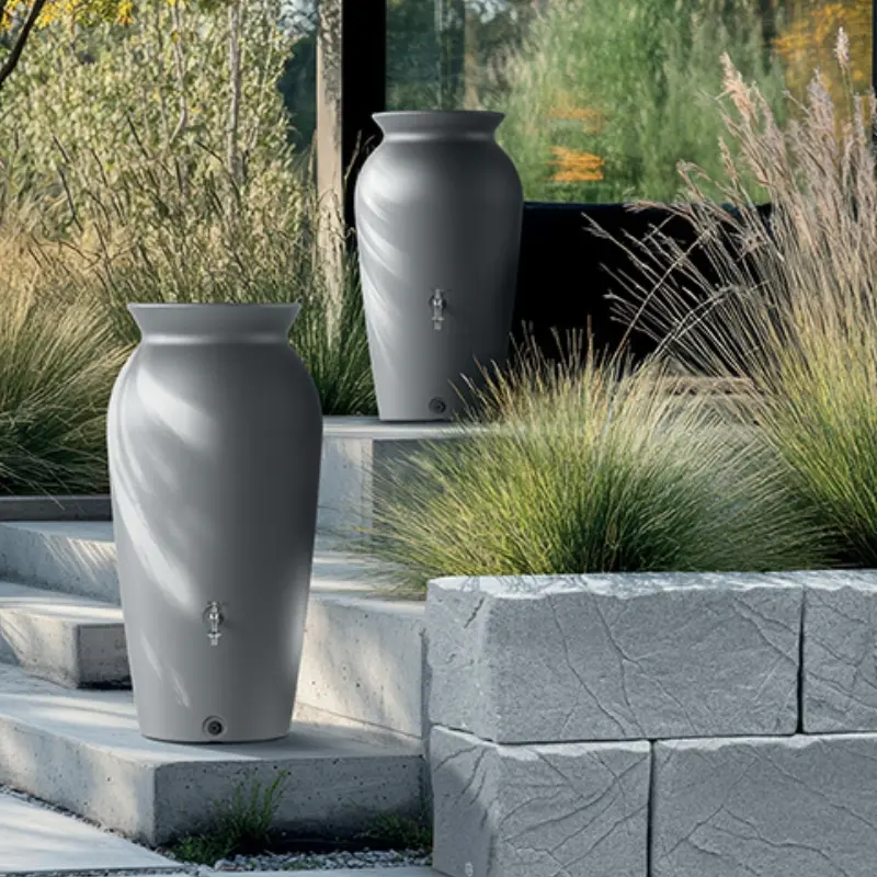 Poszukujesz zbiornika w innym wzorze? Styl modernistyczny albo może prowansalski ogród? Może planujesz zbierać znaczące ilości wody deszczowej i potrzebujesz zbiornika o większej objętości? Koniecznie sprawdź naszą bogatą ofertę zbiorników naziemnych i zbiorników do gromadzenia wody pod ziemią.
