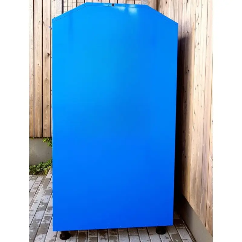 Poszycie pojemników wykonane jest z ocynkowanej ogniowo stalowej blachy. Elementy takie jak stopka, uchwyt i klamka są wykonane z blachy czarnej i ocynkowane przed malowaniem. Całość malowana jest z zewnątrz proszkowo w kolorze wg palety RAL. Wybór koloru z palety zależy od Ciebie. Kontener może być pomalowany w kilku kolorach, zrealizujemy każde zamówienie. Drzwi kontenera są ryglowane 3 punktowo dla dodatkowego bezpieczeństwa. W dodatku kontener wyposażony został w regulowane nóżki, dzięki którym można ustawić go równo nawet na bardzo spadzistych terenach.
