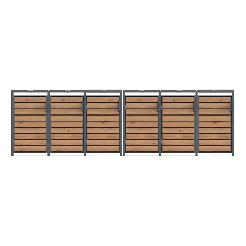 Produkt WOOD BOX COVER występuje dwóch wielkościach – pod pojemniki komunalne 120L oraz pojemniki 240L. Zwróć uwagę na nasze gotowe zestawy składające się z 2, 3, 4, 5 i 6 segmentów, które pozwalają dopasować system do Twoich potrzeb.