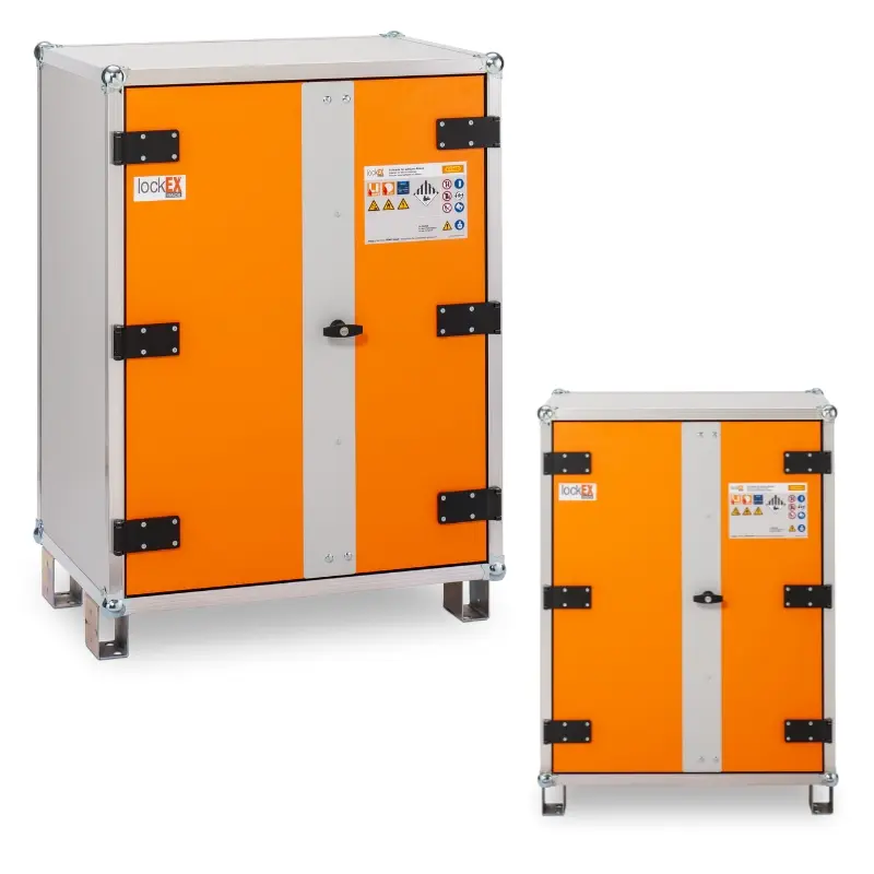 Szafka do ładowania akumulatorów LOCKEX to innowacyjne rozwiązanie, w którym priorytetowo zostały potraktowane kwestie bezpieczeństwa. 60 minut ochrony przeciwpożarowej, które zapewnia szafa, jest wystarczającym czasem do podjęcia odpowiednich działań ochronnych przed ewentualnym rozprzestrzenieniem się ognia. Ognioodporność została potwierdzona testami MPA zgodnie z normą DIN EN 1363-1.