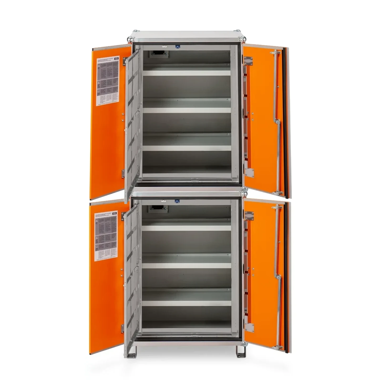 - Podwójna, dwudrzwiowa szafa do przechowywania baterii litowo-jonowych lub elektronarzędzi