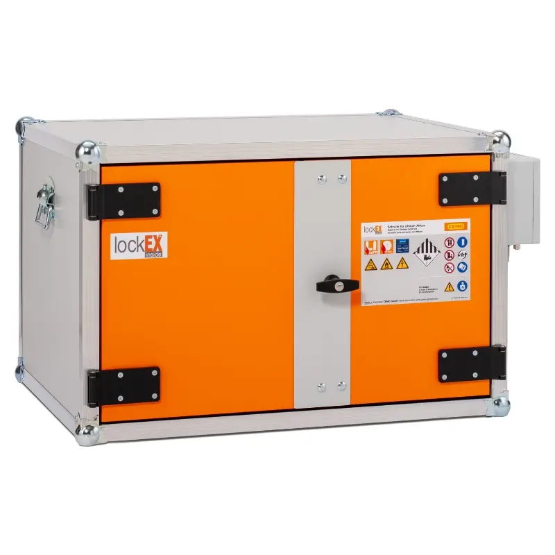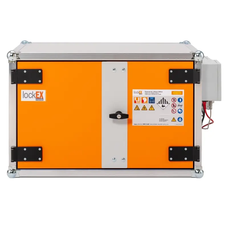 Szafka do ładowania akumulatorów LOCKEX to nowoczesne rozwiązanie, które priorytetowo traktuje kwestie bezpieczeństwa. 60 minut ochrony przeciwpożarowej, które oferuje szafa, zazwyczaj jest wystarczającym czasem, do podjęcia odpowiednich działań ochronnych przed rozprzestrzenieniem się ognia. Ognioodporność została potwierdzona testami MPA zgodnie z normą DIN EN 1363-1.