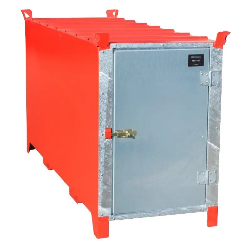 z drzwiami to bezpieczny produkt przeznaczony zarówno do składowania, przechowywania w firmach, jak i i transportu odpadów niebezpiecznych, takich jak zużyte świetlówki i lampy fluorescencyjne. Konstrukcja z blachy stalowej zapewnia wysoką trwałość oraz bezpieczeństwo podczas użytkowania. Pojemnik na odpady niebezpieczne umożliwia przechowywanie wielu świetlówek w jednym miejscu ułatwia ich późniejsze przekazanie do recyklingu. Maksymalna pojemność wynosi około 1100 świetlówek o średnicy Ø 25 mm lub około 500 sztuk Ø 37 mm.