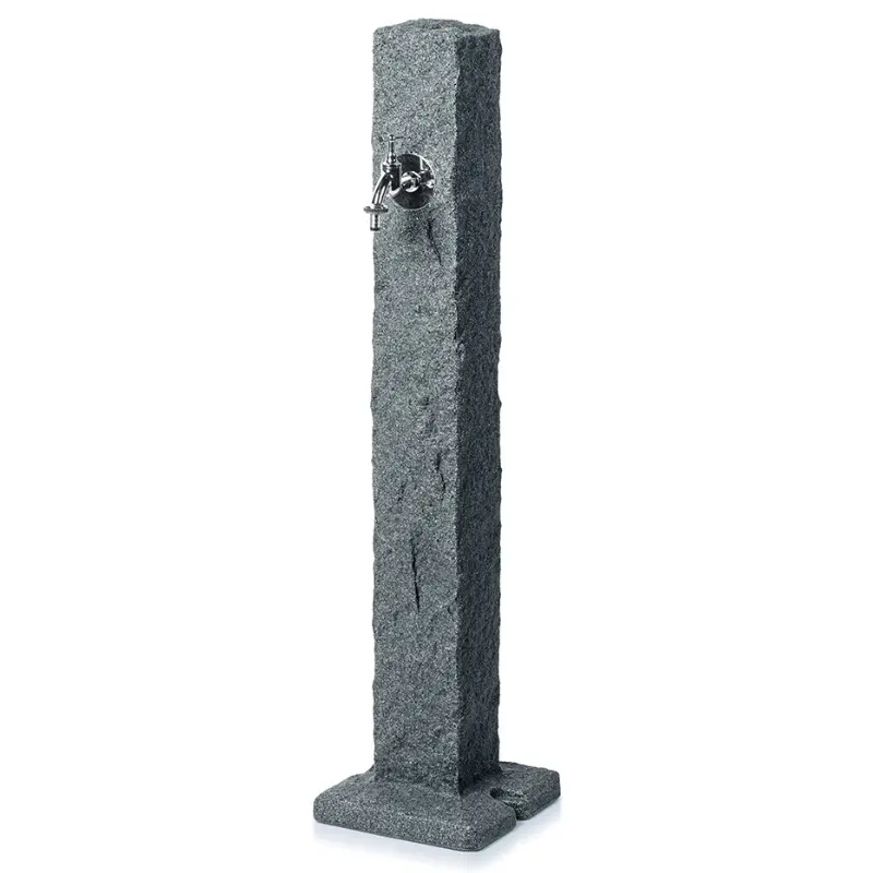 Dekoracyjny punkt poboru wody NATURA wykonany jest z mocnego tworzywa sztucznego i gwarantuje dużą odporność na niekorzystne warunki atmosferyczne i niszczenie. Dzięki punktowi wodnemu z imitacji granitu szybko napełnimy konewkę wodą deszczową, nawet w centrum ogrodu. Pod dekoracyjny słupek NATURA podłączymy też wąż ogrodowy z szybkozłączą, ażeby podlewać trwanik, rośliny ozdobne, umyć auto.