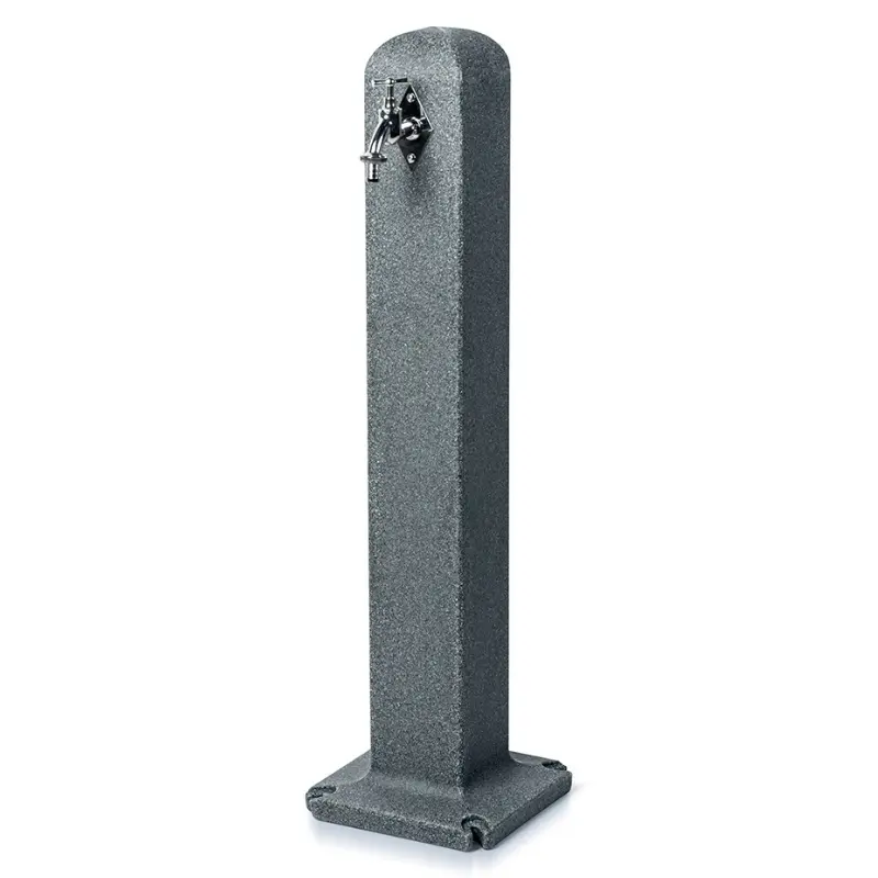 Punkt poboru wody POLLER wyróżnia się elegancką „kamienną” powierzchnią. Występuje w dwóch wersjach kolorystycznych – jasnym szarym i antracytowym. Produkt jest trwały, odporny na warunki atmosferyczne i pasuje do niemal każdego nowoczesnego ogrodu.