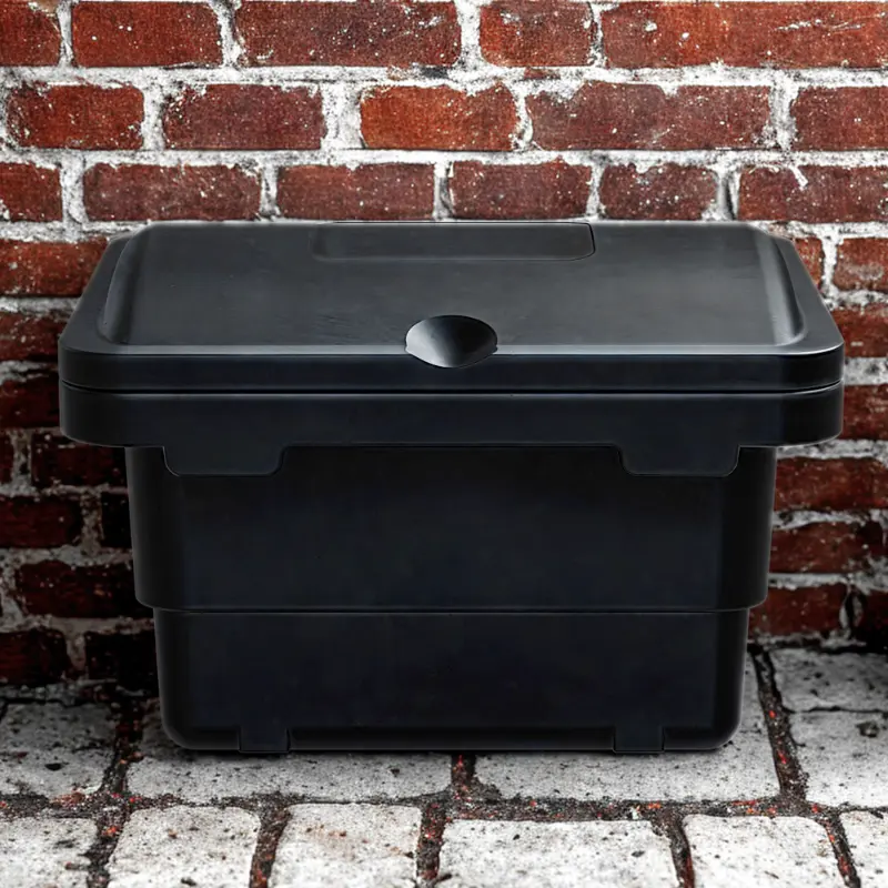 Pojemnik na piasek i sól 350L to uniwersalne rozwiązanie do utrzymania bezpieczeństwa w sezonie zimowym w miejscach publicznych. Zmniejsza ryzyko oblodzenia nawierzchni, ułatwia dostęp do materiału sypkiego, a jednocześnie zapewnia przechowywanie „pod kluczem”. Pojemnik na piach i sól jest odporny na oddziaływanie czynników zewnętrznych, dzięki czemu może być użytkowany przez cały rok – zarówno w okresie zimowym, jak i letnim. Wieko montowane z zawiasami nierdzewnymi zapewnia trwałość oraz niezawodne działanie nawet po wielu sezonach użytkowania. Materiał nie blaknie pod wpływem działania promieni UV, nie pęka przy niskich temperaturach i nie przepuszcza przechowywanej soli do gleby. To gwarantuje trwałość oraz ochronę środowiska naturalnego. Skrzynia ICE BIN R 350 L posiada atest higieniczny PZH, co oznacza, że spełnia normy higieniczne, toksykologiczne i ekologiczne. Ten certyfikat zapewnia, że pojemnik jest neutralny chemicznie i może być stosowany w przestrzeniach publicznych, do przechowywania także innych materiałów – w tym paszy, karmy, nawozów, piasku do zabawy.