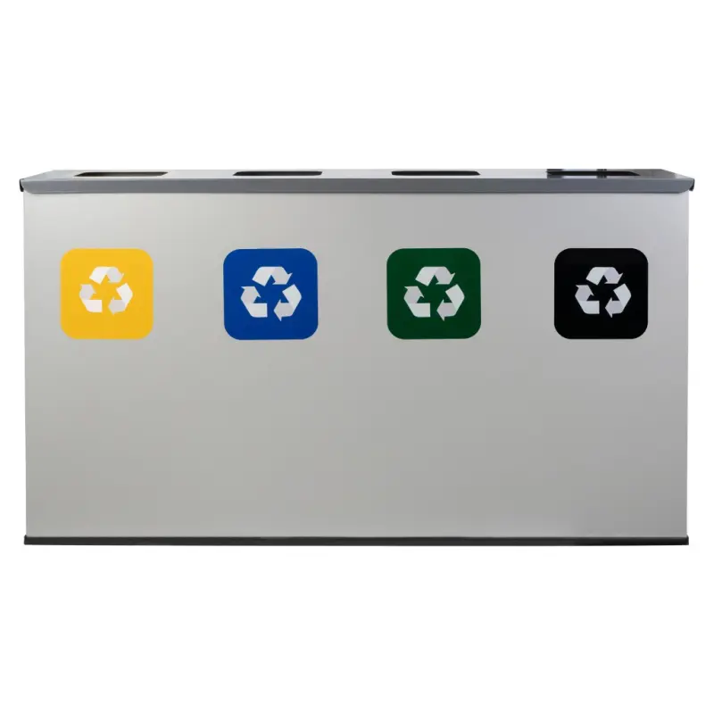 Jej minimalistyczny design sprawia, że świetnie wpasuje się w nowoczesną architekturę. Do stacji załączone są 4 kolorowe naklejki z nazwami frakcji odpadów w języku polskim i angielskim oraz kolorowe otwory wrzutowe, które pomagają w prawidłowej segregacji odpadów.