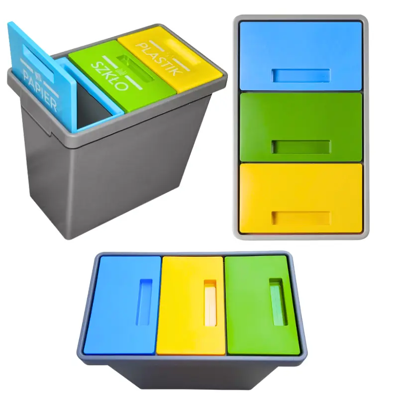TERCET 40 L – 3-KOMOROWY POJEMNIK DO SEGREGACJI ODPADÓW W SZKOŁACH, BIURACH, DOMACH I URZĘDACH