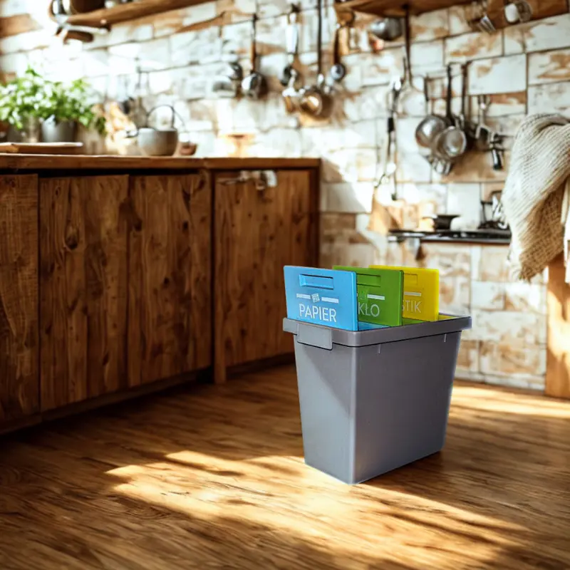 Kosz na śmieci do segregacji odpadów 3- komorowy TERCET to świetne rozwiązanie dla niewielkich pomieszczeń. Dzięki funkcjonalnej bryle i zastosowaniu przegród nie zajmuje dużo miejsca, a na dodatek pozwala efektywnie segregować odpady. Dopasuje się do wielu przestrzeni – takich jak kuchnie, spiżarnie, domy jednorodzinne, kawalerki, będzie też dobrze sprawdzał się przy segregacji śmieci w bloku. Kosz do segregacji śmieci 3 komorowy będzie służył nam zarówno pod zlewem, przy ścianie, jak i koło blatu roboczego w kuchni. Jego budowa sprawdzi się też w wielu firmach, w pokojach socjalnych, w poczekalniach, hostelach i pensjonatach.