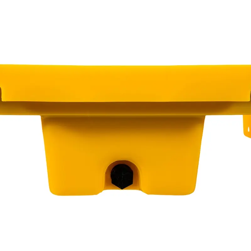 Korek spustowy pozwala na szybkie opróżnianie pojemnika, ułatwia czyszczenie i zwiększa komfort codziennego użytkowania. Tak samo, jak zdejmowana kratownica, umożliwia ustawienie kanistra oraz beczek z płynem nad zbiornikiem. Wanna jest trwała, wysoce odporna na uszkodzenia, korozję oraz trudne warunki pracy.