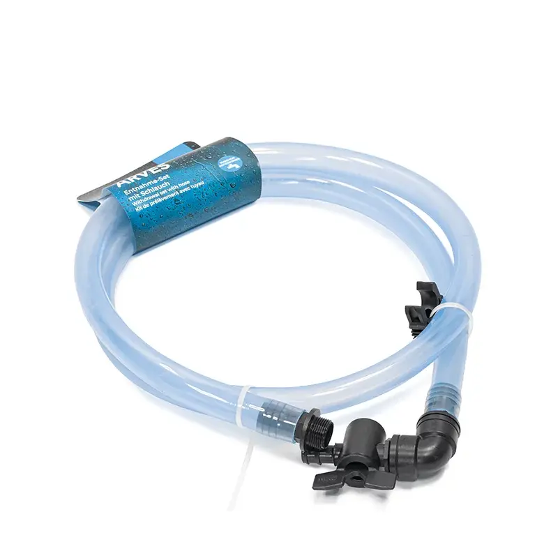 - W zestawie: wąż przezroczysty 2,0 m, kranik spustowy, uchwyt ścienny