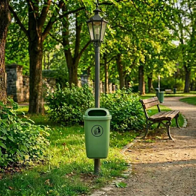 - Kosz z szyną mocującą można zamontować na lampie, ścianie, słupku