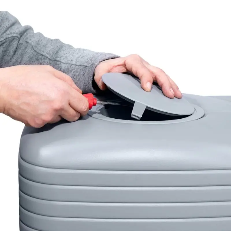 Zdejmowana pokrywa – zapewnia łatwy dostęp do pompy, pozwala na uzupełnianie preparatu do klarowania wody i usprawnia czyszczenie zbiornika