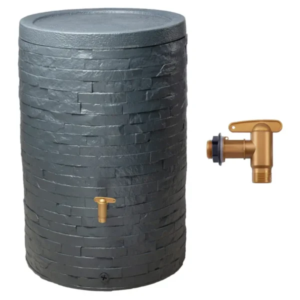 Zbiornik ARONDO o pojemności 400 litrów to praktyczne i estetyczne rozwiązanie do zbierania deszczówki w ogrodzie. Dzięki modnej grafitowej kolorystyce z dekoracyjną fakturą kamienia, świetnie wpisuje się w nowoczesne aranżacje przydomowej przestrzeni. To idealna propozycja dla osób ceniących świadome gospodarowanie wodą nie idąc na kompromis wobec wyglądu zbiornika.